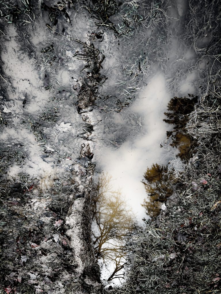 Monika Barth’s photographs of „found stills“ are an attempt to transcend the boundaries of reality. They are an invitation to engage with the obvious and to perceive what is hidden behind reflective surfaces. Sky, earth, clouds, water, stones and plants form a cosmos of elements in the smallest of spaces, reflecting deeply personal feelings and desires.